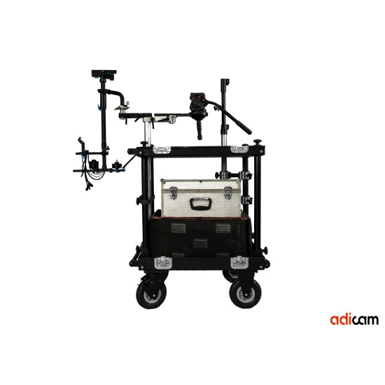 Adicam MINI weighs barely 30 kg and allows to transport the equipment of the fivefold more weight. The torsion wheels have been enriched with breaks which guarantees more stability in difficult conditions. Thanks to the facing covering the both decks, the carried equipment is stabilized. The cart can be folded as a small dimensions suitcase to be easy carried by most cars. The wide list of the available accessories allows for a configuration by choice.