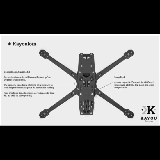 Introducing the Kayouloin designed for Freeride and Mountain Surfing, a 7" frame with amazing flight performances.