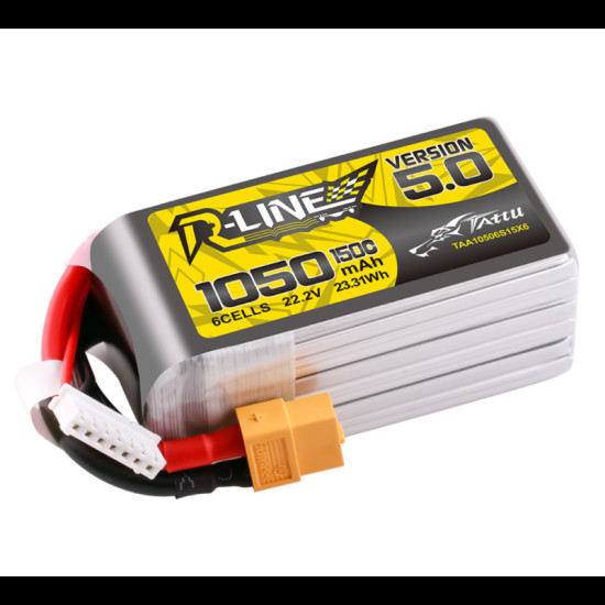 Tattu R-Line Version 5.0 1050mAh 14.8V 150C 6S1P LiPo battery pack is the updated version of R-Line series. With More Punch, Lower Internal Resistance and Less weight, Tattu R-line V5 definitely dominate all your races.